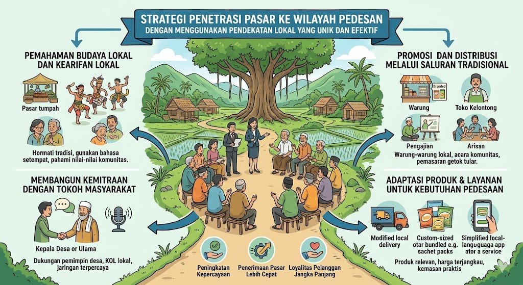 Pasar pedesaan sering kali dianggap sebagai “raksasa tidur” dalam dunia bisnis global. Dengan jumlah populasi yang besar dan peningkatan daya beli yang perlahan namun pasti, wilayah pedesaan menawarkan potensi pertumbuhan yang luar biasa bagi perusahaan yang jenuh dengan persaingan ketat di wilayah perkotaan. Namun, melakukan ekspansi ke desa tidak semudah memindahkan strategi kota ke lingkungan rural. Karakteristik konsumen pedesaan sangat unik, cenderung komunal, dan sangat menghargai hubungan personal. Oleh karena itu, diperlukan strategi penetrasi yang tidak hanya mengandalkan kekuatan modal, tetapi juga kedekatan emosional dan pemahaman mendalam terhadap kearifan lokal yang berlaku di wilayah tersebut.